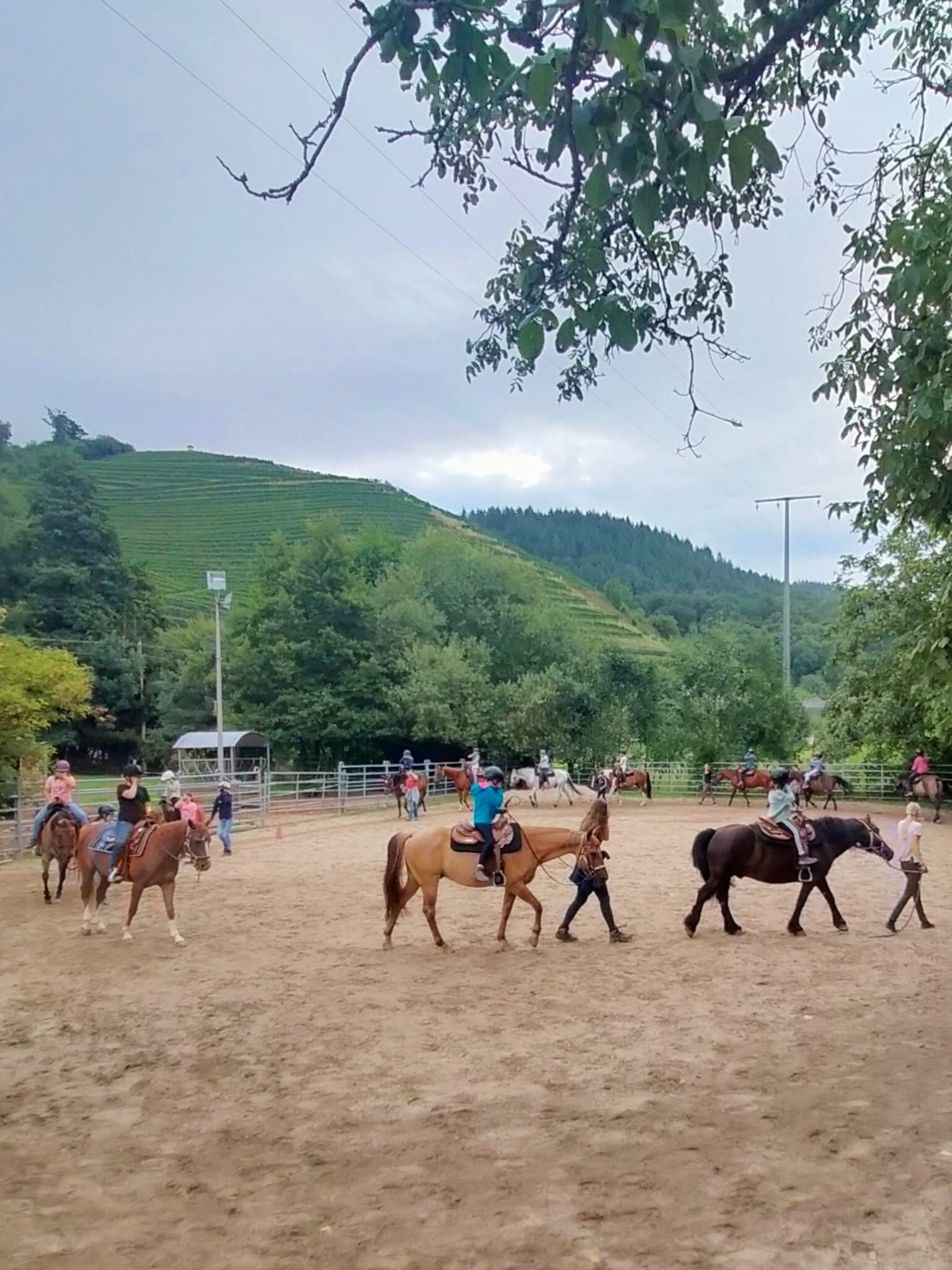Außerdem haben wir jede Menge Spiele rund ums Pferd, ein bischen Theorie ist auch dabei; wir gehen mit den Pferden ins Gelände und im Stall helfen dürft ihr natürlich auch.